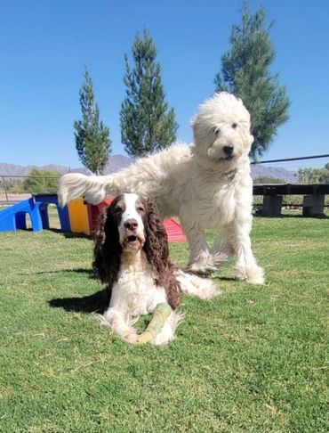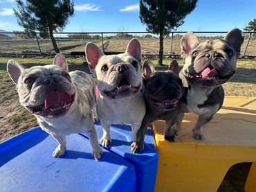 We have several play areas for dogs of different sizes and activity levels, areas are partially covered so dogs can be protected from the elements during potty breaks and playtimes.